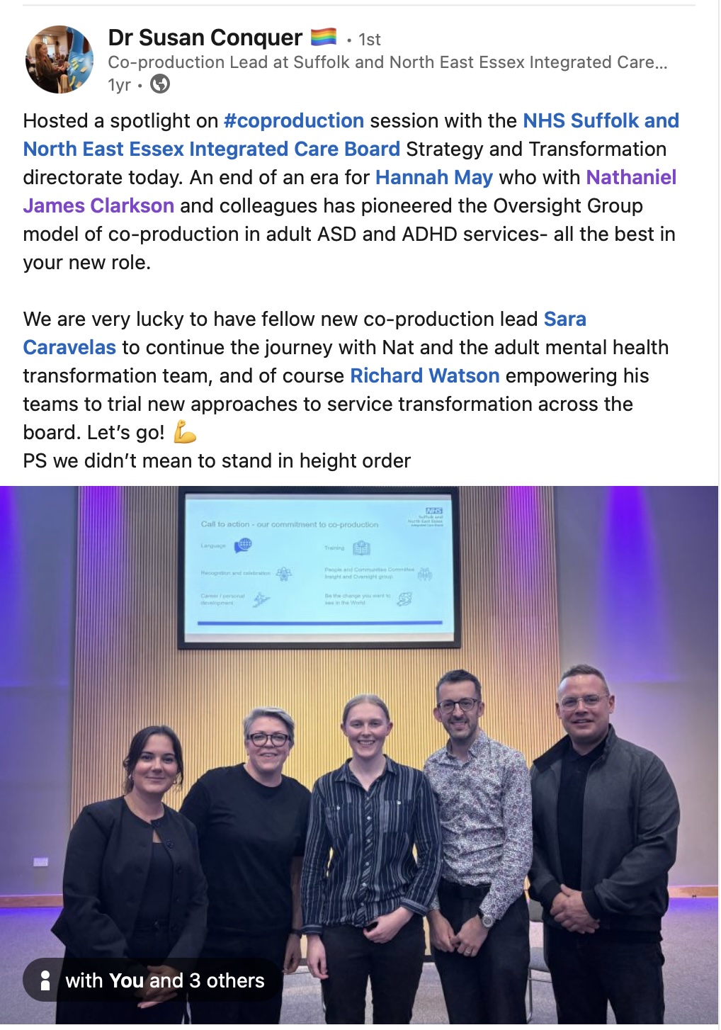 Additionally, Nathaniel was part of the pioneering team who developed the Oversight Group model of co-production for adult ASD and ADHD services within the NHS. Having proven the success of these methodologies regionally, he continues to use his unique blend of analytical rigor and creative vision to drive meaningful reform and unlock human potential.