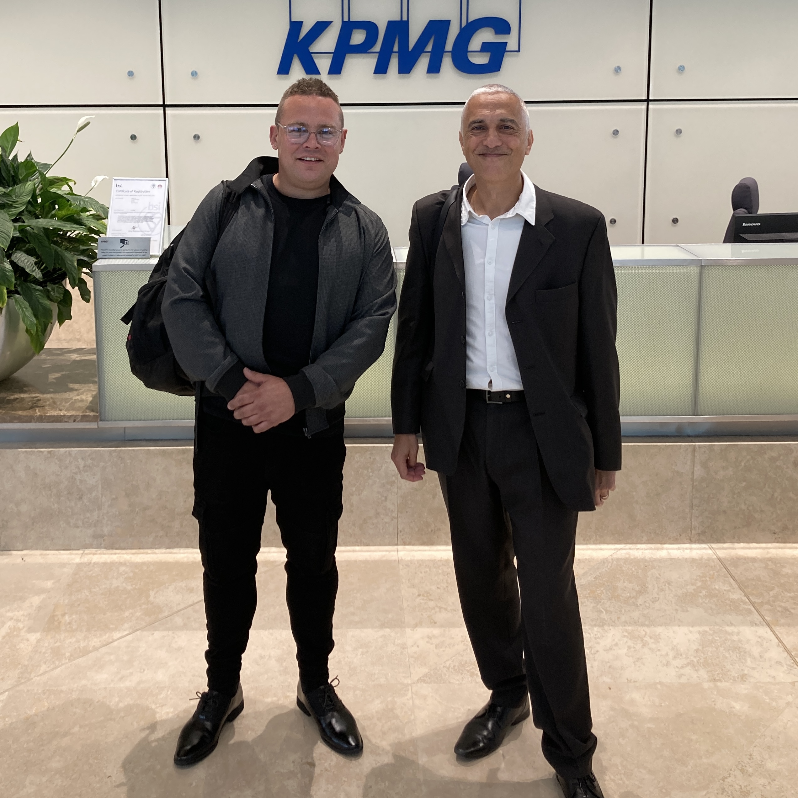 Nathaniel & Andy Yacoub (Healthwatch Suffolk CEO) at KPMG Canary Wharf during their visit to NHS England to share the co-production work of Healthwatch Suffolk with West Suffolk Hospitals first ever co-produced Hospital, a blueprint for how new health infrastructure should function.